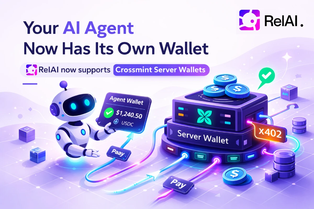 RelAI now supports Crossmint Server Wallets — persistent, backend-controlled wallets that let AI agents pay for services autonomously, without any user session or private key management.