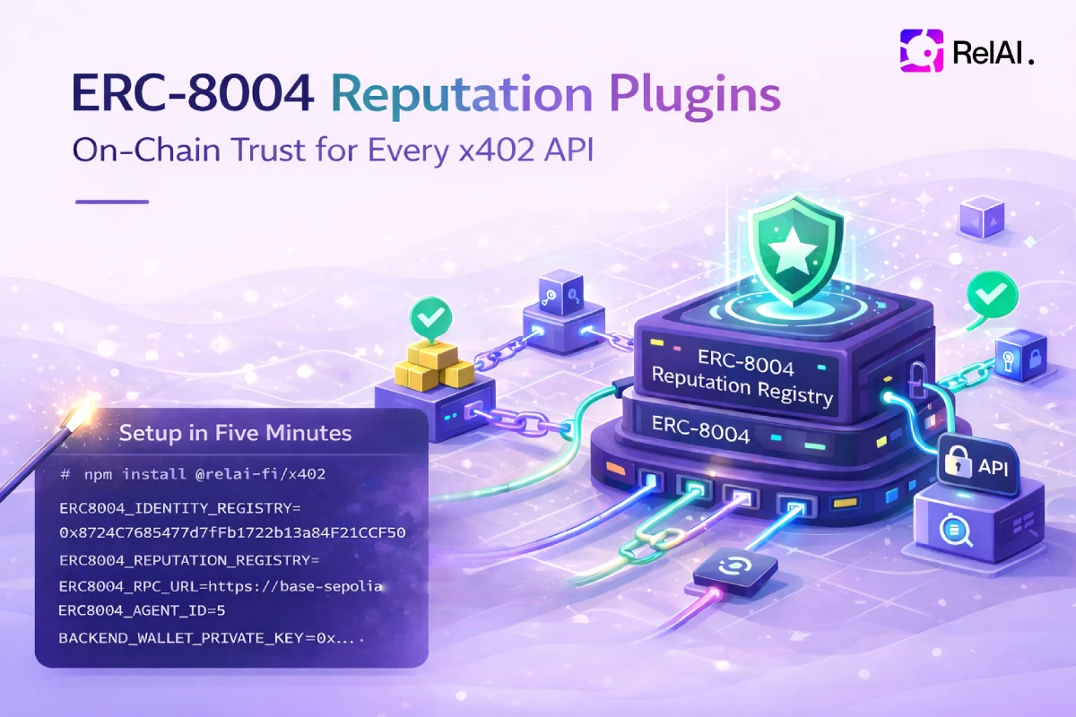 The @relai-fi/x402 SDK now has four ERC-8004 plugins: score(), feedback(), solanaFeedback(), and submitRelayFeedback(). Build verifiable on-chain reputation for your API in minutes.