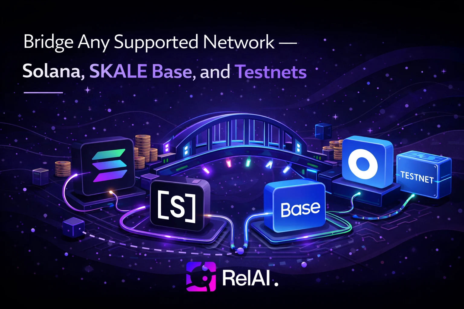 The RelAI Bridge now supports every network in the RelAI ecosystem. Bridge USDC between Solana and SKALE Base on mainnet, or test with Solana Devnet and SKALE Base Sepolia - the same bridge, all directions.