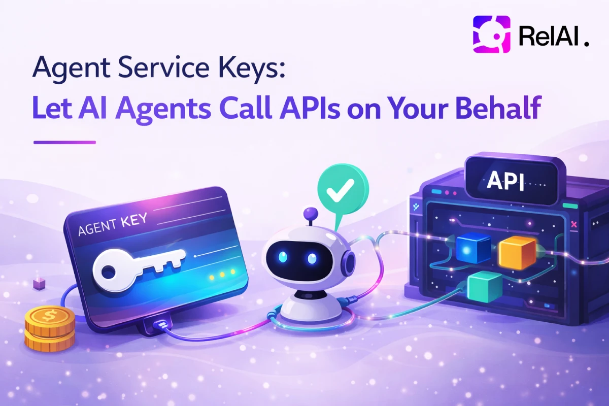 RelAI now lets you link any on-chain AI agent to your account. The agent proves ownership by signing a message with its NFT owner wallet. Once linked, it calls APIs using an X-Service-Key — no crypto, no x402, billed to your account.